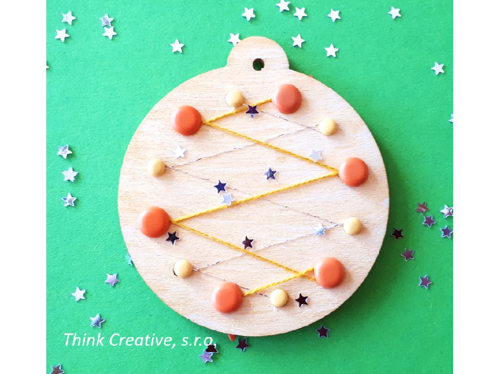 Prošívací dřevěná ozdoba je určená především jako originální vánoční dekorace. Nejprve si děti ozdobu vymalují a pak prošijí jehlou s bavlnkou. Vhodné i pro tvoření dospělých, na ergoterapii. Může se využít i jako originální medaile k dotvoření.
