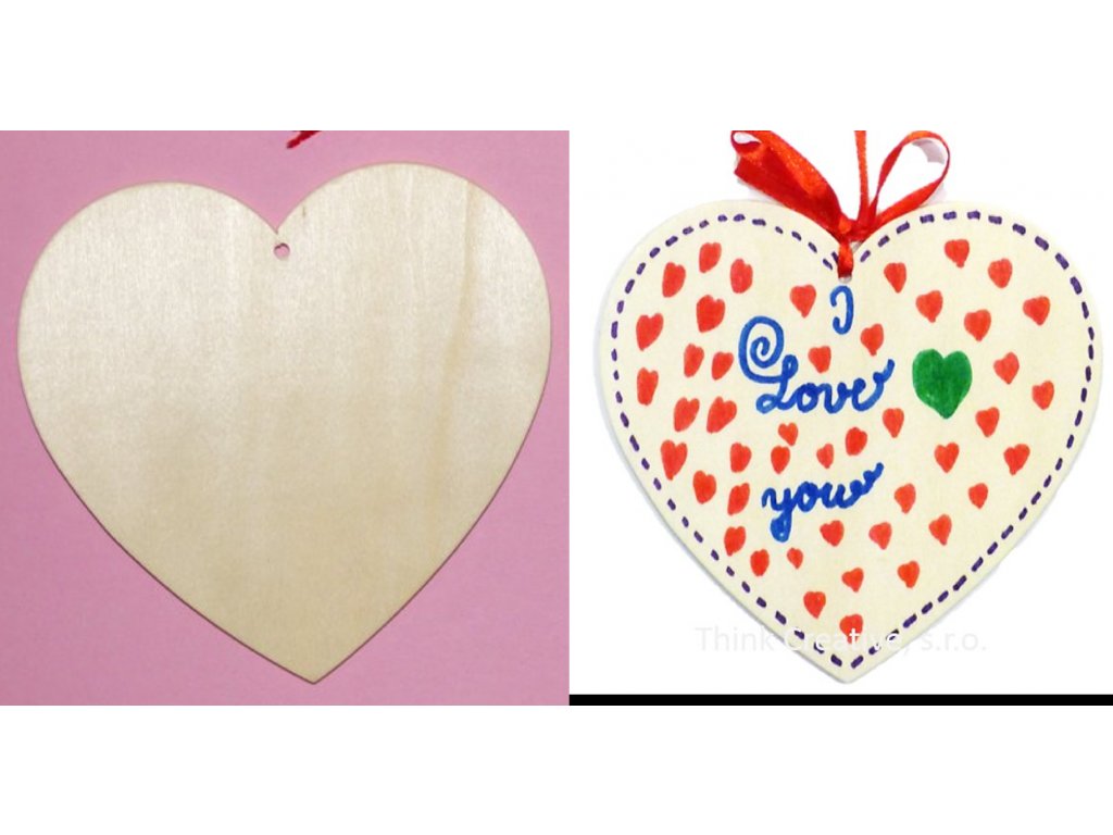 Dřevěné srdíčko 10 x 10 cm s dírkou na zavěšení.
