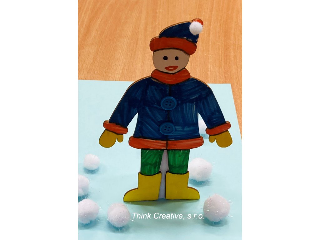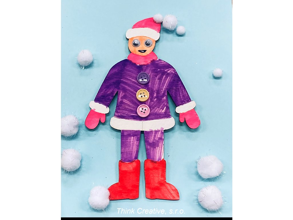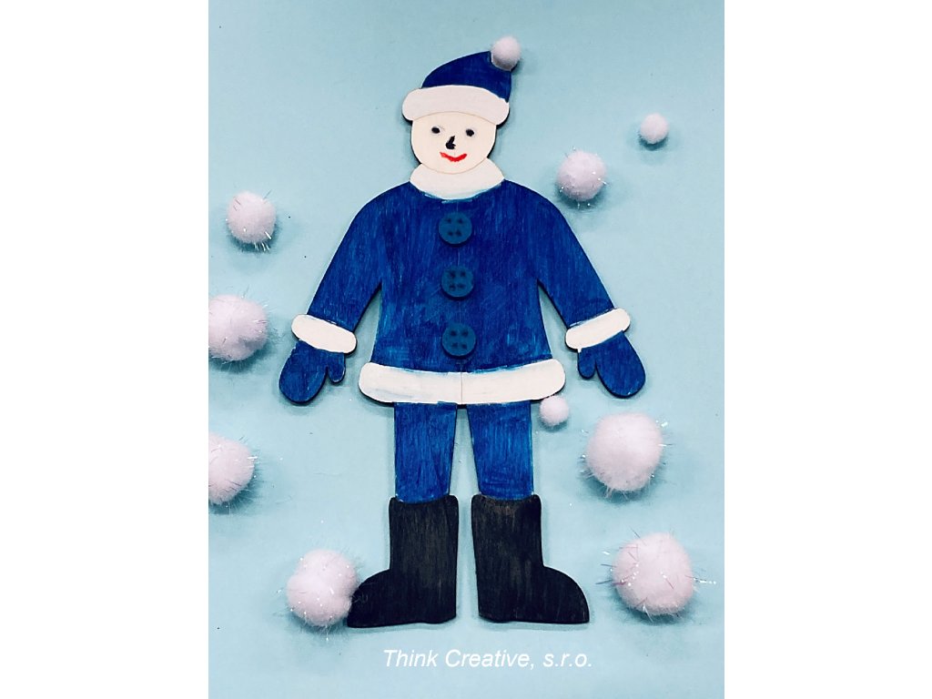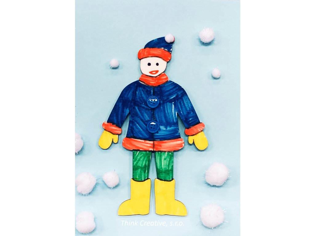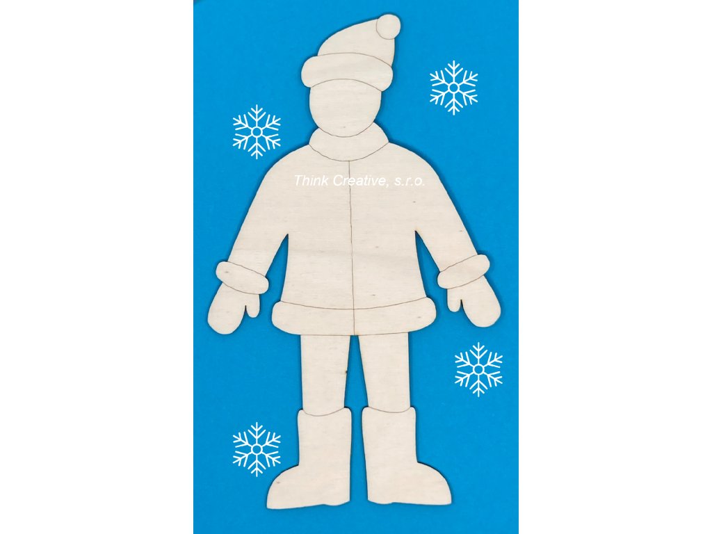 Dřevěný výřez předkreslené postavy v zimním oblečení. Ideální na vybarvení oblečení v kombinaci s polepením filcem, bambulkami a knoflíky pro získání 3D efektu. Skvělé na malování detailů jsou fixy decor v základních nebo pastelových barvách (v naší nabídce).