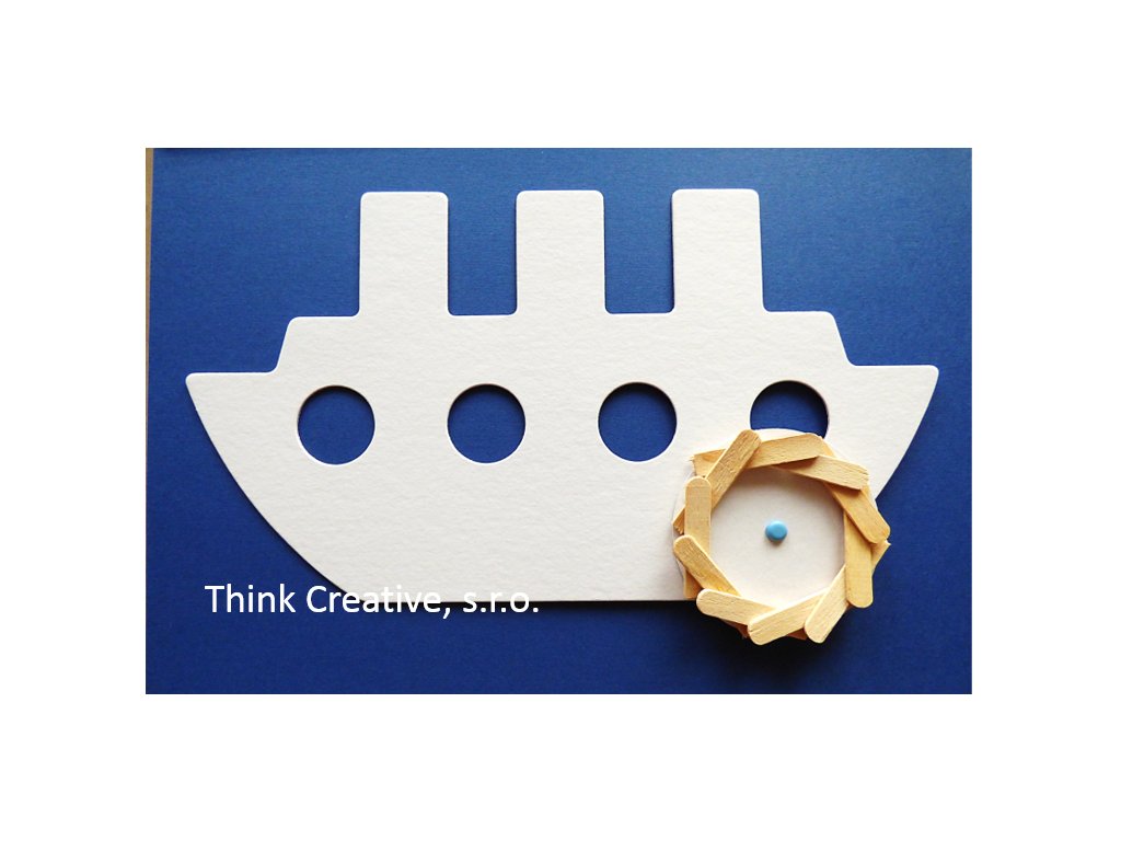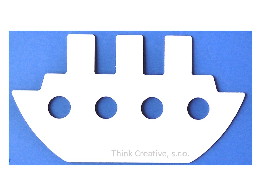 Parník je vyroben z tuhého oboustranně bílého kartonu.