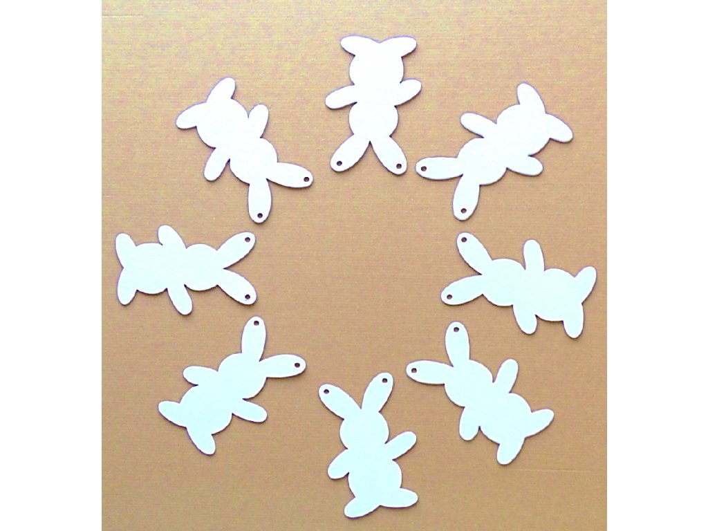 Lze je dozdobit fixy, barvami, pastelkami, nalepit oči nebo dozdobit knoflíky. Ideální na zavěšení do dětského pokoje či MŠ. V případě potřeby lze zajíčky dokoupit jednotlivě.