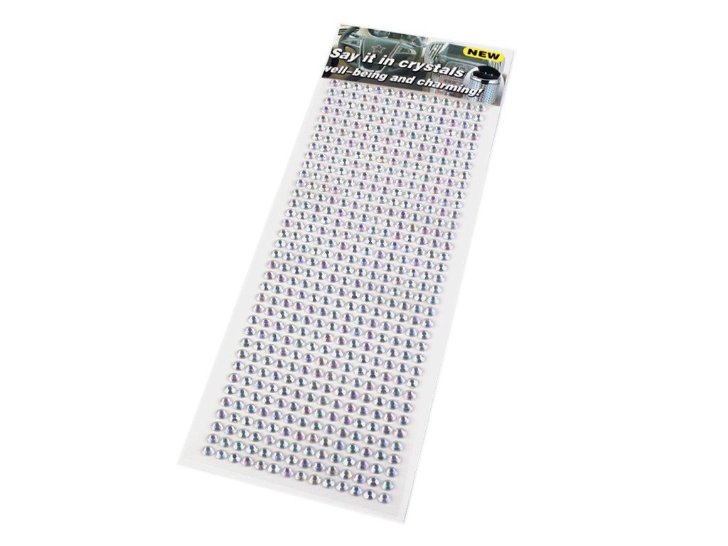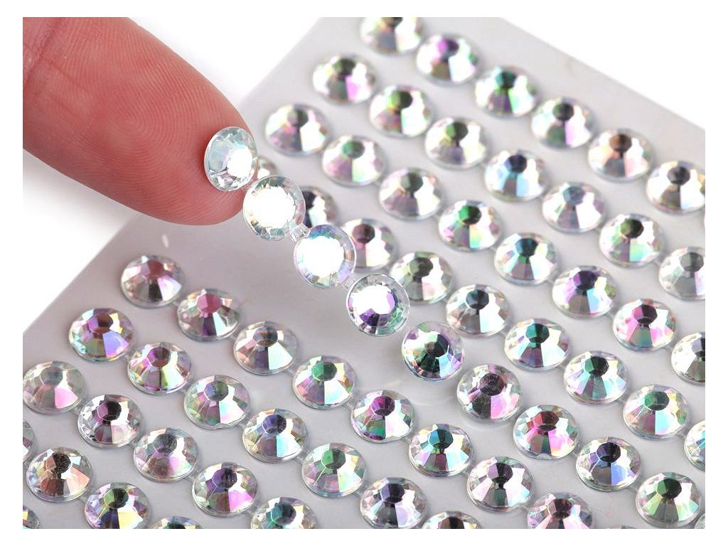 Samolepicí kamínky jsou broušené, působivě se třpytí. Mají AB efekt, který vytváří duhové odlesky připomínající polární záři.