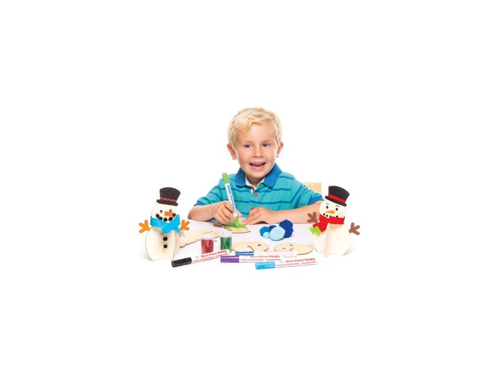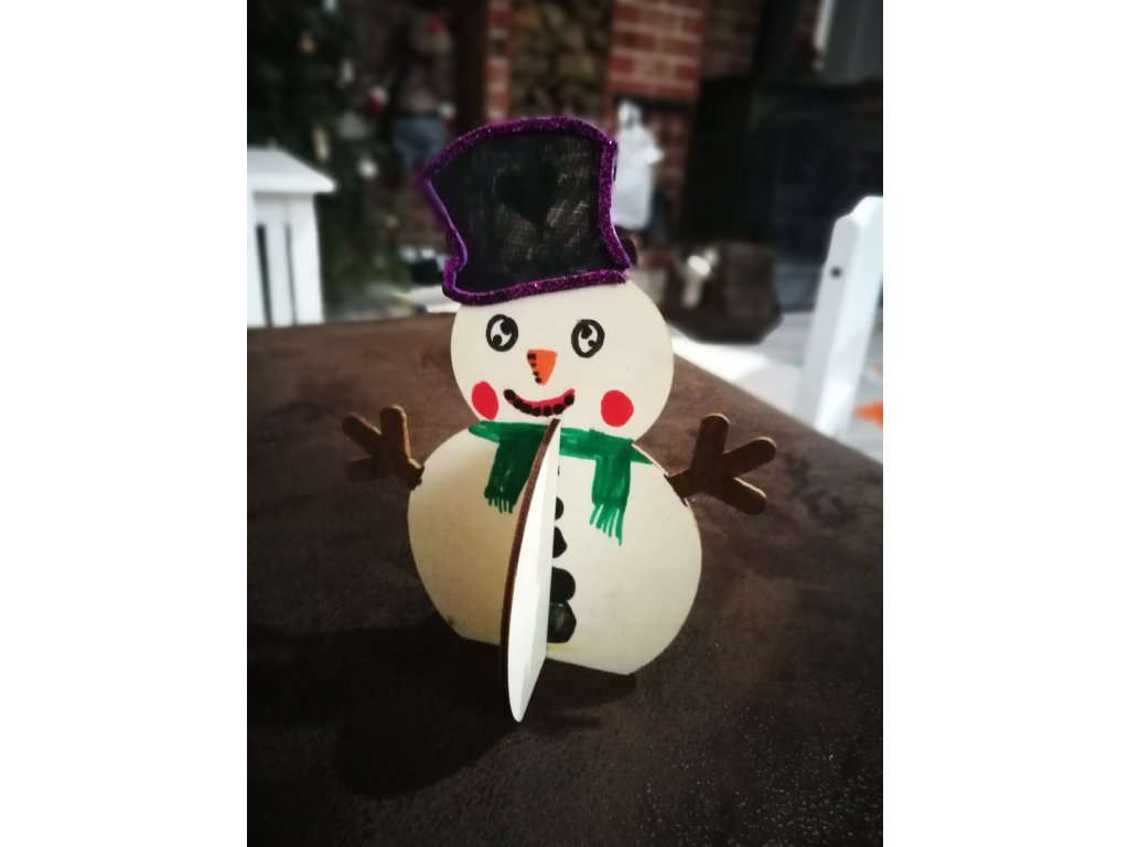 Vytvořte si úžasného 3D sněhuláka stojícího pomocí stojánku, který se zasunuje do sněhuláka do kříže. Dozdobit ho můžete fixami Decor Pen, bílými bambulkami, samolepícími kamínky nebo knoflíky z našeho eshopu.